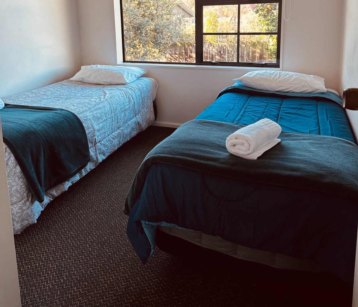 This is a spacious self-contained/self cleaning 3 bedroom house with a spacious lounge and kitchen. Perfect for groups or families it includes a large, modern well equipped kitchen. It features a roomy dining area with a covered entertaining space and a large lounge. With a queen bed in the main bedroom and 2 singles in each of the other two bedrooms. There is plenty of space for everyone. The bathroom includes a shower and a separate toilet. The lounge provides SKY TV, Fire place for cold days, couches with a ceiling fan. Heat pump is installed in the hallway of the bedrooms for climate control.