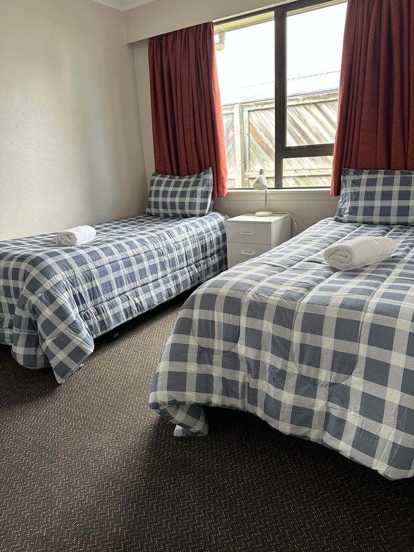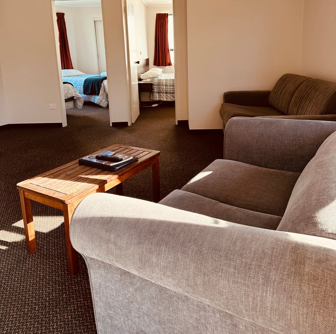 Spacious and tidy modern two bedroom units with a full kitchen including stovetop, fridge and microwave. Light and airy bedrooms with a queen bed in one room and 2 single beds in the other. A large, spacious lounge includes air-conditioning, a sofa and SKY TV plus a dining table and chairs. The bathrooms are bright and fresh and include a shower.
