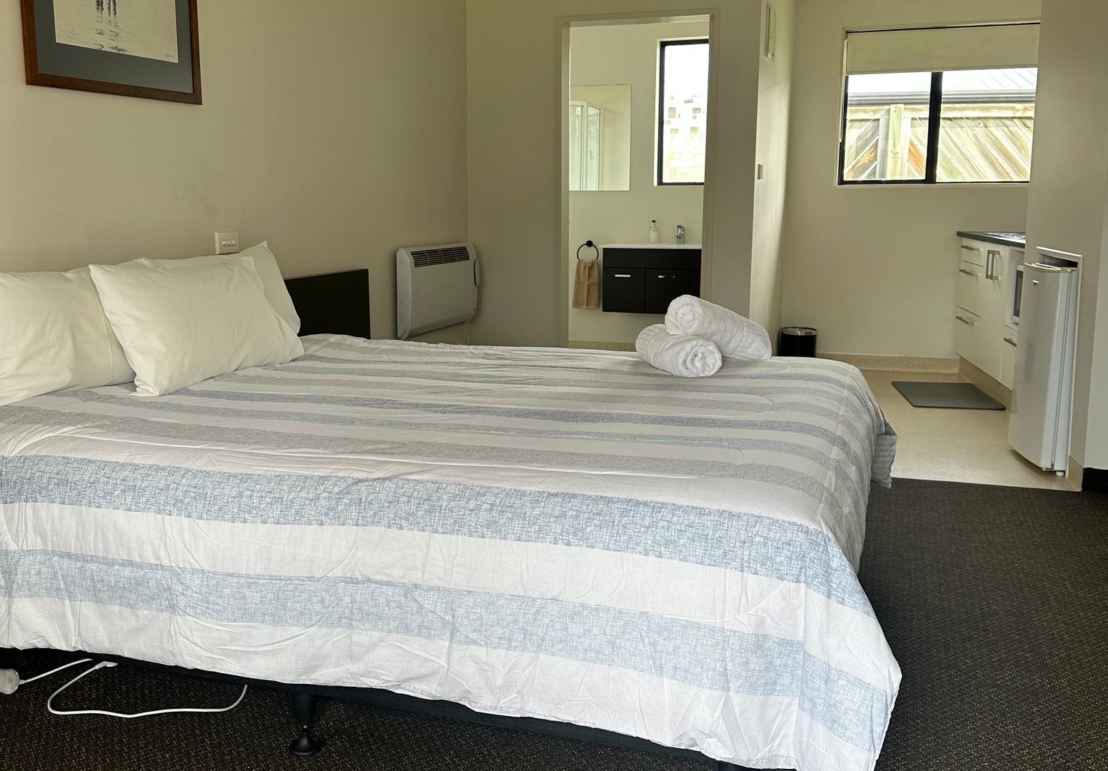 We have a range of spacious, tidy self-contained studio units. Enjoy your stay in a quiet setting with bright, airy comfortable rooms. They feature tidy and well equipped kitchenettes with refrigerator, toaster, microwave and electric kettle and bright, roomy bathrooms with a separate shower. A dining table and chairs, and modern seating are a feature in most rooms. There is also an accessible studio unit available with a large roomy bathroom, subject to availability.